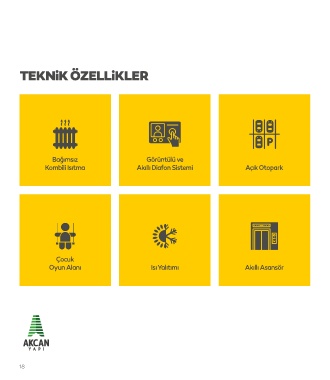 TEKNiK ÖZELLiKLER Bağımsız Görüntülü ve Kombili Isıtma Akıllı Diafon Sistemi Açık Otopark Çocuk Oyun Alanı Isı Yalıtımı Akıllı Asansör 18