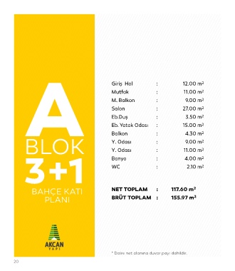 BAHÇE KATI NET TOPLAM : 117.60 m 2