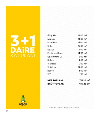 * Daire net alanına duvar payı dahildir.